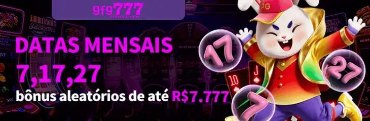 A promoção “Datas Mensais” oferece bônus especiais nos dias 7, 17 e 27 de cada mês, com prêmios aleatórios de até R$ 7.777. Ao participar nesses dias, você pode ser surpreendido com uma recompensa extra, tornando o mês ainda mais emocionante. É uma excelente oportunidade para ganhar prêmios de forma divertida e inesperada.